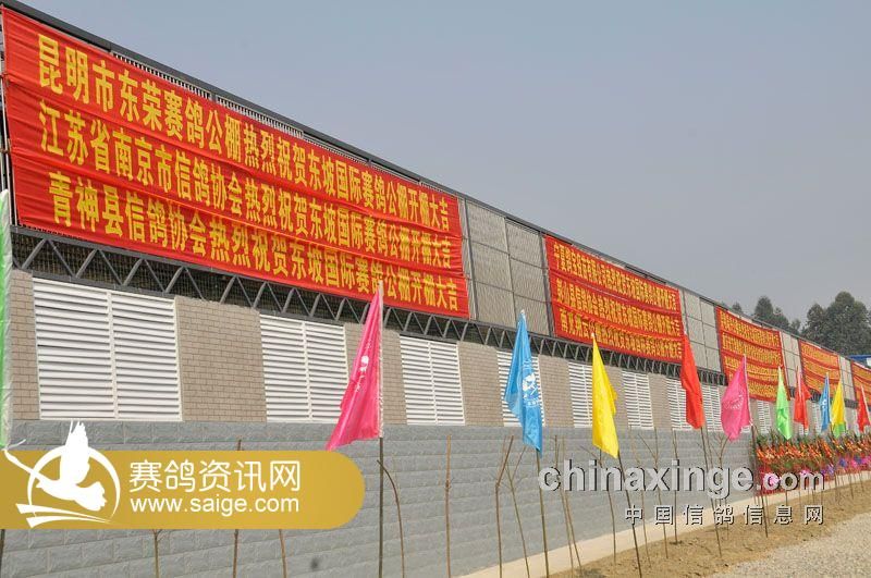 今天,艳阳高照,来自北京、陕西、云南、江苏、重庆以及川内国内鸽界名流汇聚东坡国际公棚,见证了四川东坡国际公棚诞生。前来祝贺嘉宾的有四川省信鸽协会副主席、眉山市信鸽协会主席毛加云先生、江苏省信鸽协会副秘书长南京信鸽协会主席陈益国先生、银川市信鸽协会主席马平先生、中国火车头信鸽协会主席陈统杰先生,南京市信鸽协会副主席戴春茂先生、西安威力信鸽有限公司总经理薛永祥先生、云南著名拍卖师刘云先生、陕西曌翔公棚董事长程功先生、陕西曌翔公棚总经理冯建军先生、北京展翔信鸽有限公司董事长张金福先生、北京合瑞祥公棚董事长兰云涛先生、广汉市信鸽协会向会长罗勇先生等。同时还有很多公棚同行送来牌匾,祝贺的条幅、花篮等等,现场气氛温馨而热烈。
