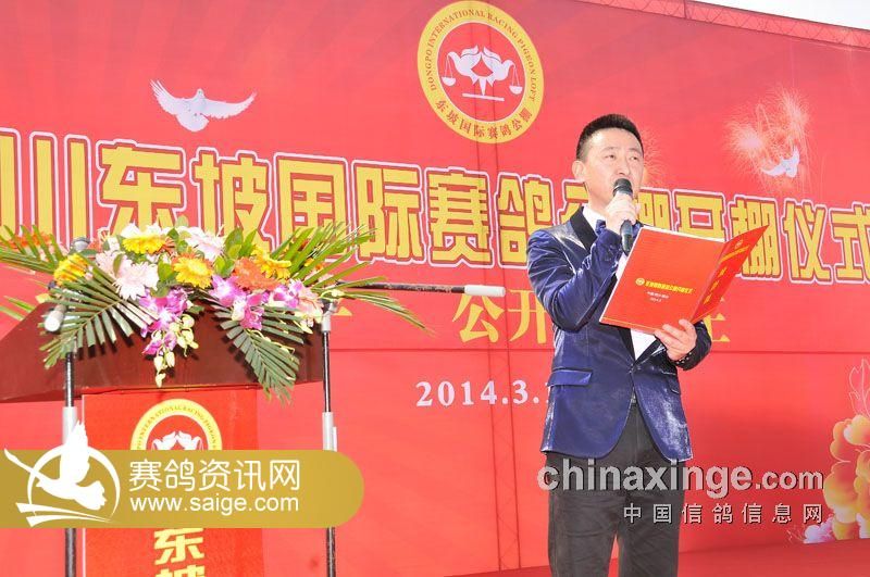 四川东坡(国际)赛鸽公棚董事长徐俊先生致欢迎辞:首先在这喜庆的日子里,欢迎来自全国各地的好朋友百忙当中参加四川东坡(国际)赛鸽公棚开业庆典,有了大家的支持,才会有四川东坡(国际)赛鸽公棚的明天。今天也是四川东坡(国际)赛鸽公棚万里长征的第一步,我们本着“三公原则”把东坡(国际)赛鸽公棚办成四川优秀的赛鸽公棚,为全国鸽友搭建好一个诚信的赛鸽竞技舞台。