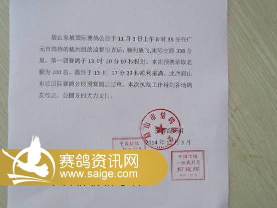 东坡公棚第二关预赛鸽协监放报告