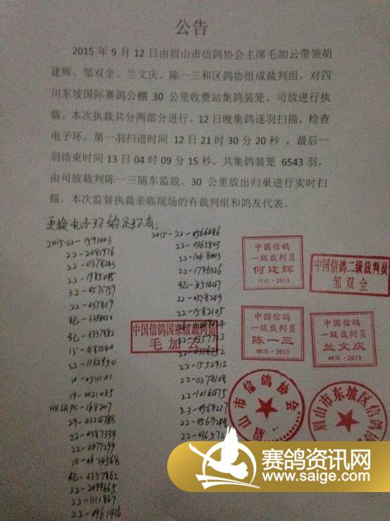 四川东坡国际赛鸽公棚30公里收费站执裁公告
