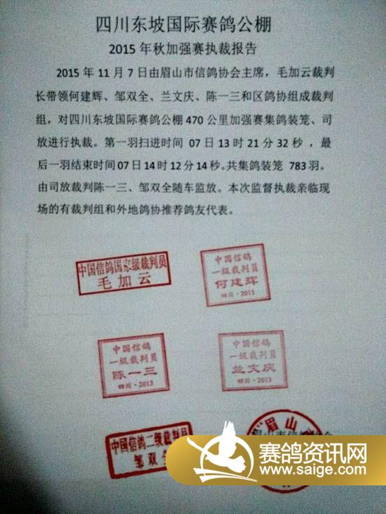四川东坡国际赛鸽公棚秋加强赛执裁报告