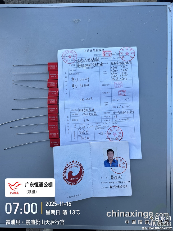 感谢福建省信鸽协会大力支持,委派裁判监放开笼全过程。