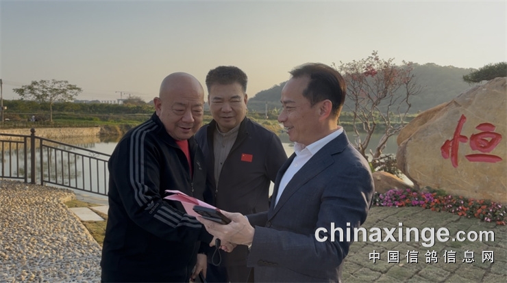 广东恒通董事长丁文雄与广东省信鸽协会副会长许旭辉(左)林旭辉(中)