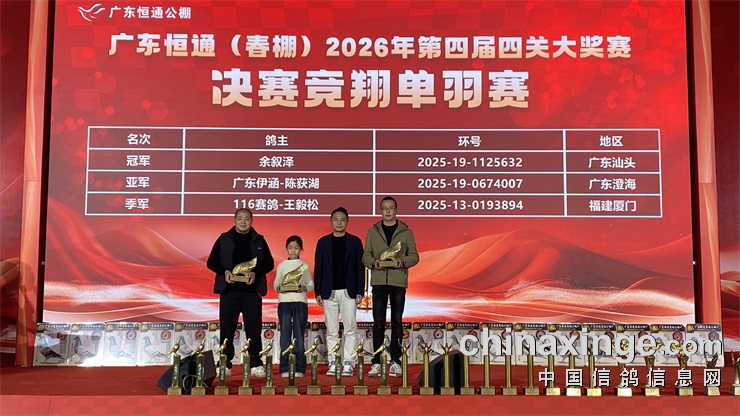 中国不缺好鸽子,好赛场上更不缺好鸽子!2026广东恒通(春棚)四关比赛关关精彩夺目,每一关分速都在1200米-1300米之间,无论天气如何,赛程远近,小鸽子的表现始终神勇如一,全凭一对翅膀来证明自己。