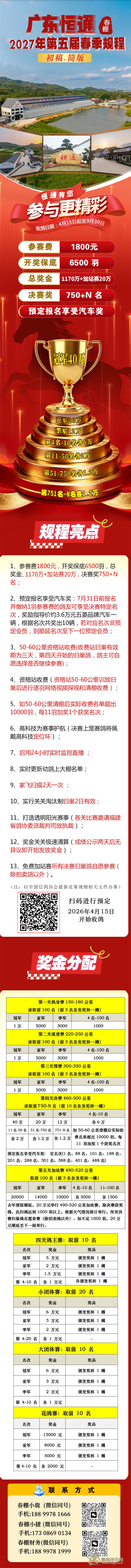 广东恒通(春棚)2027年第五届规程简章(2026年4月15日开始收鸽)