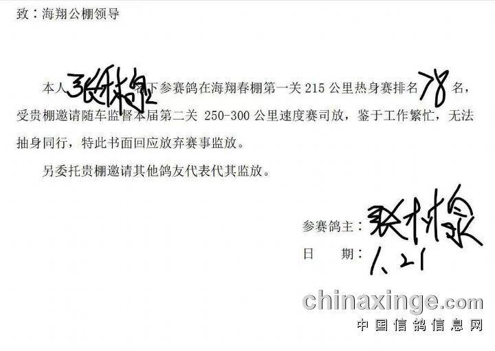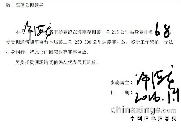 第8名18名28名38名48名58名68名78名88名98名的鸽友由于个人原因无法参与本次速度赛的监放,将委托其他鸽友参与本次速度赛监放!