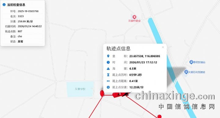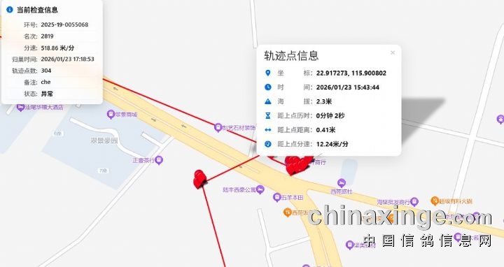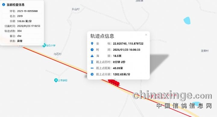 智速捷GPS定位系统公司技术人员分析,其中速度赛第2819名归巢鸽环号为:2025-19-0055068、第3323名归巢鸽环号为:2025-19-0585798、第3351名归巢鸽环号为:2025-19-1116679、三羽赛鸽归巢防伪标有被人为揭开防伪标签损坏,归巢途中有沿道路移动的迹象;其中速度赛第3065名归巢鸽环号为:2025-22-1673901、第3189名归巢鸽环号为:2025-19-0916758、两羽赛鸽归巢定位防伪标破损。