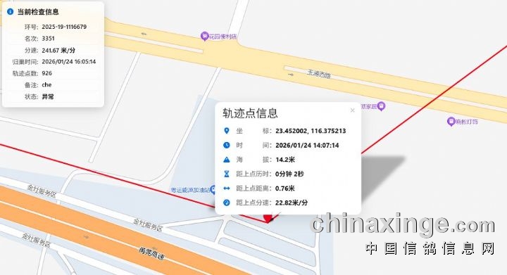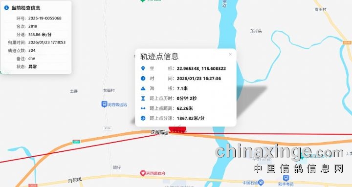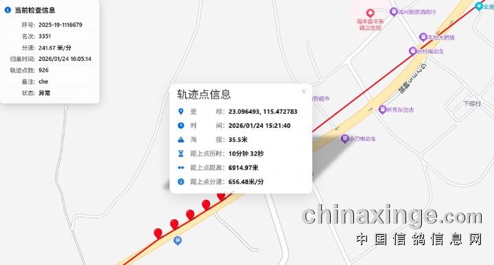 后续都是沿高速道路移动,于24日15:21:40在海丰县平东镇沿道路移动。