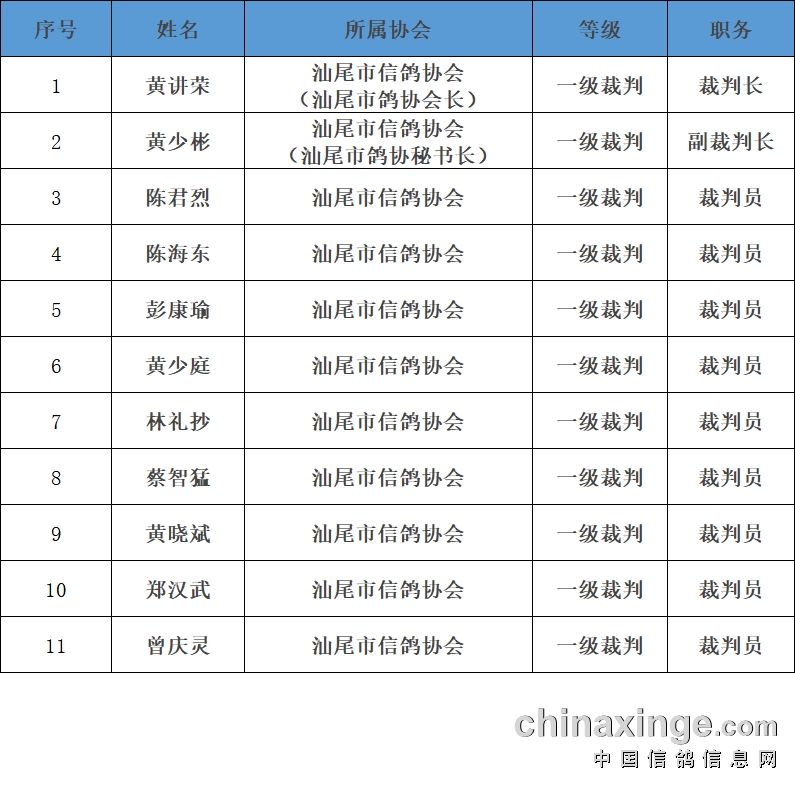 以下为资格站裁判人员名单: