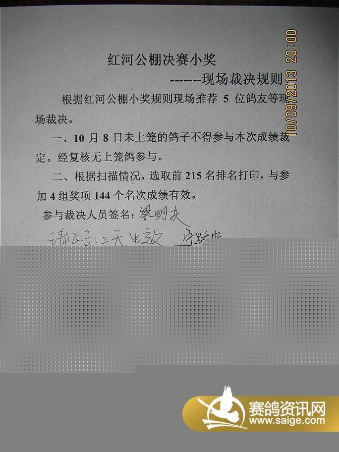 2013年红河公棚300公里决赛小奖奖金审核表