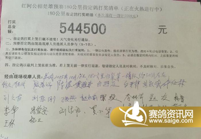 应鸽友要求:小奖奖金名单公示三天无异议后,视为生效并立即计发,请传真以下信息至公棚:获奖名次、获奖金额、姓名、电话、身份证复印件以及银行卡号。