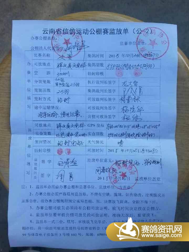 2015年云南红河赛种鸽中心决赛1名-5名照片欣赏