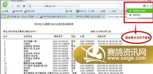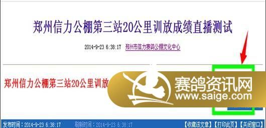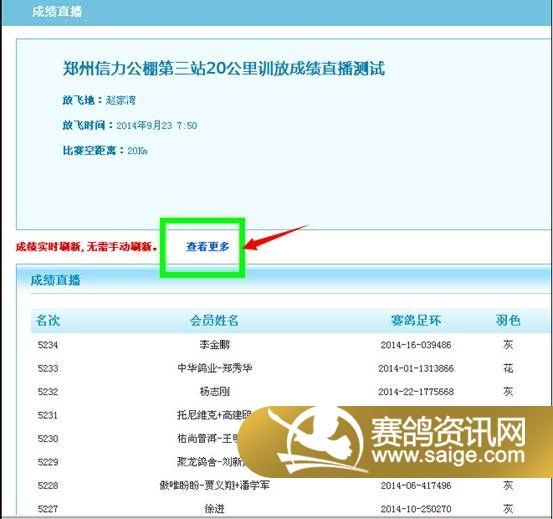(1) 进入郑州信力赛鸽公棚文化中心网站,在最新公告内点击进入成绩直播