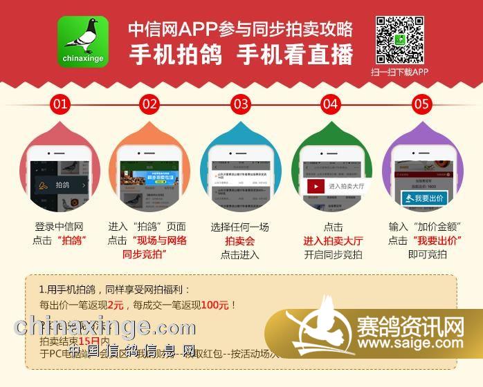 本公棚诚邀各位鸽友莅临拍卖会现场交流,不便到现场的鸽友,欢迎您登录中信网参与网络同步竞拍。