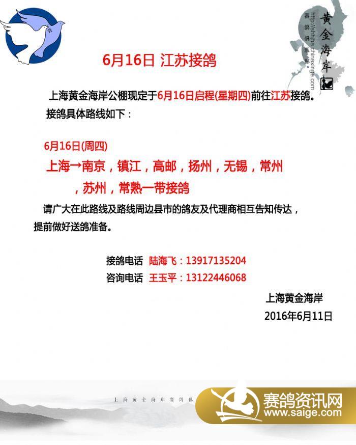 上海黄金海岸6月16日 江苏接鸽