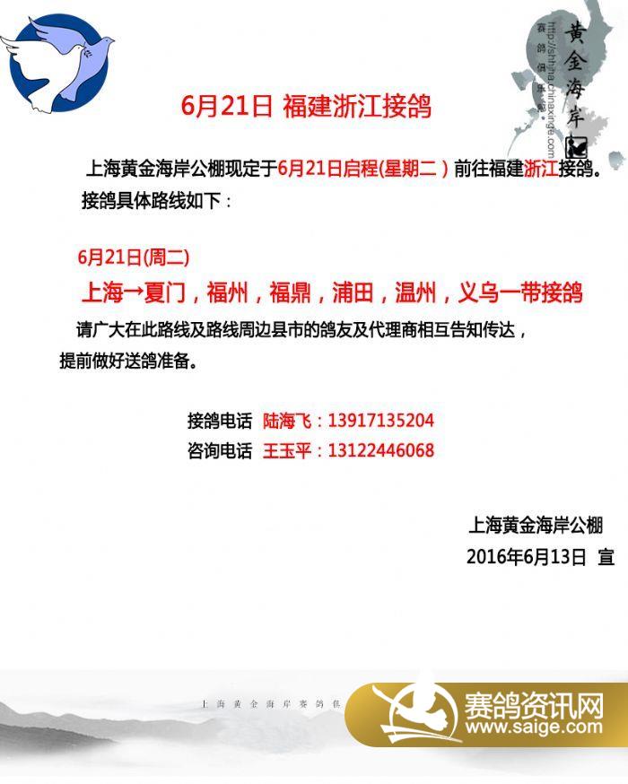 上海黄金海岸6月21日 福建浙江接鸽