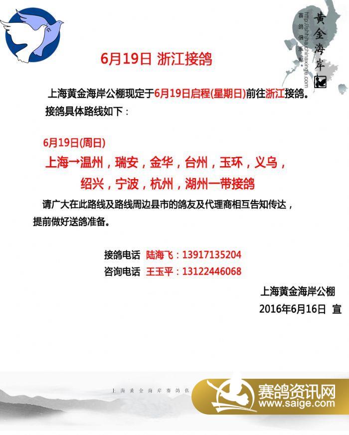 上海黄金海岸6月19日 浙江接鸽