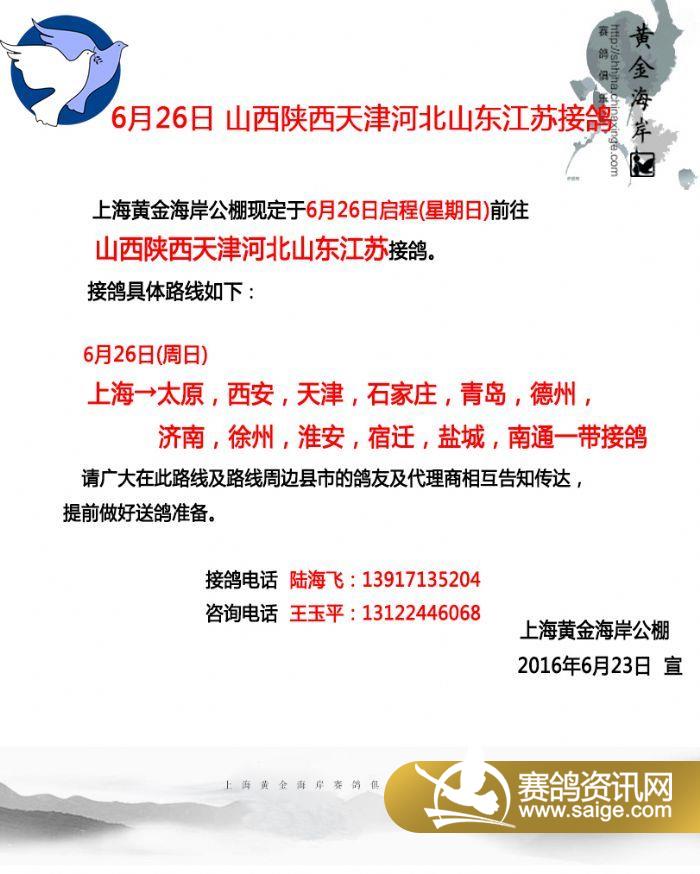 上海黄金海岸6月26日 五省接鸽