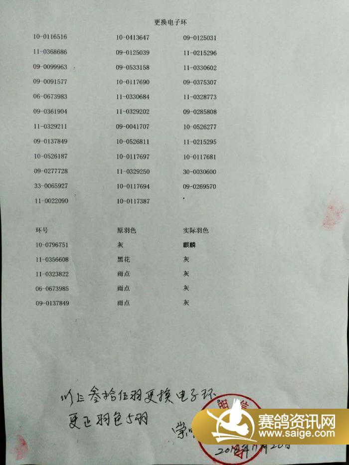 集鸽清单签字盖章