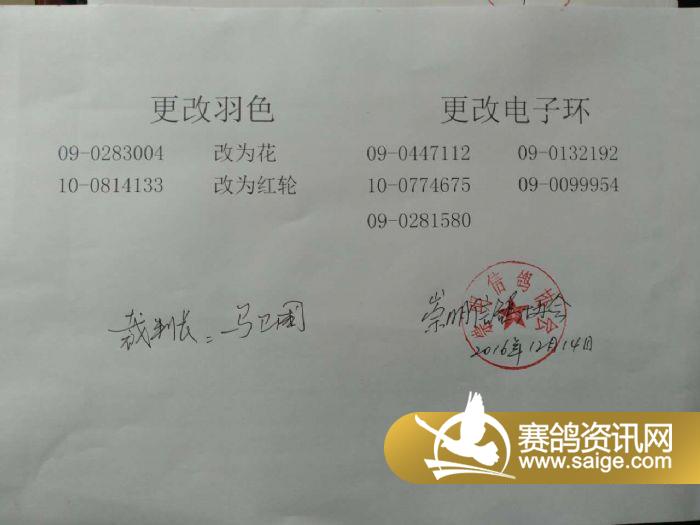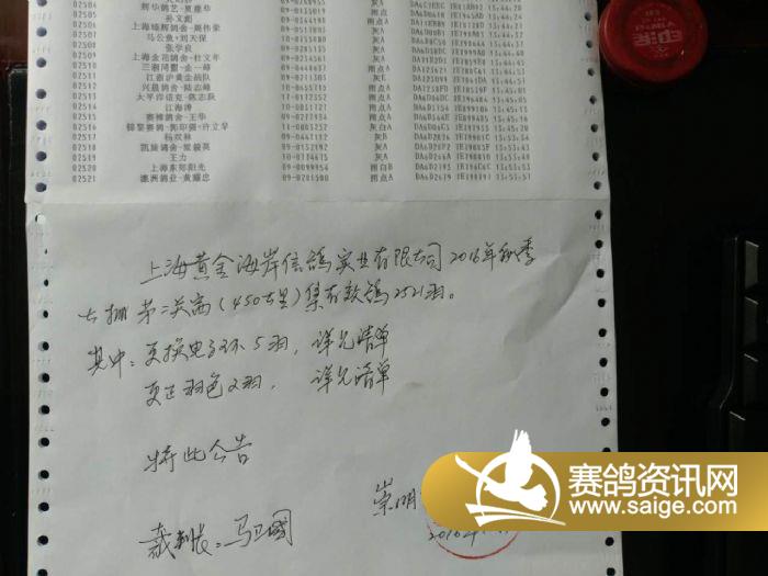 上海黄金海岸秋棚450公里(第二关)集鸽明细展示-裁判长签