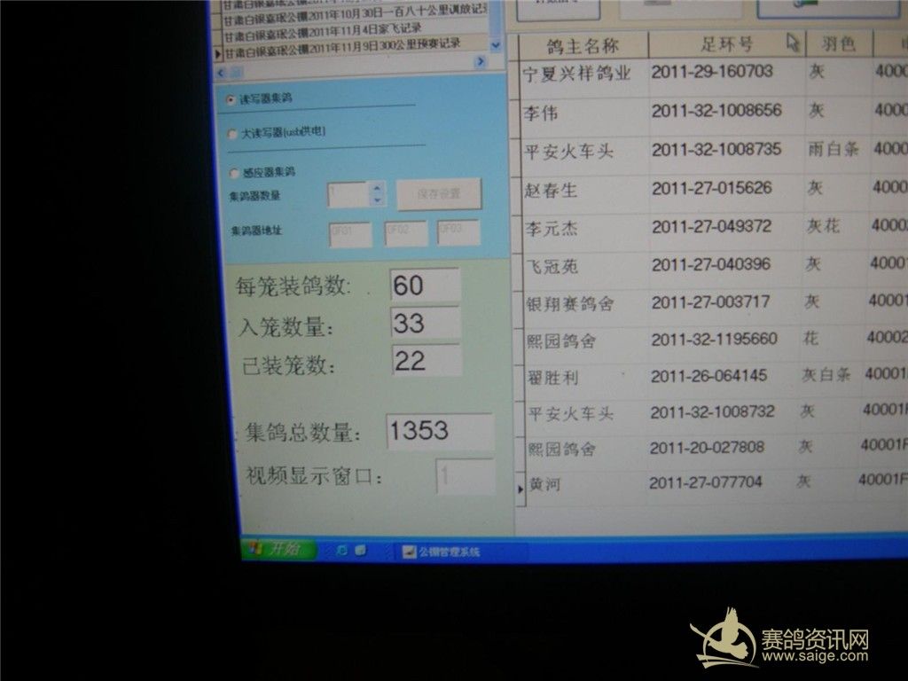 甘肃白银嘉珉公棚2011年11月8日300公里预赛集鸽图