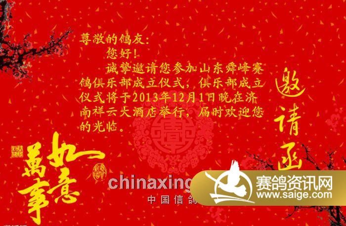山东舜峰赛鸽邀请函