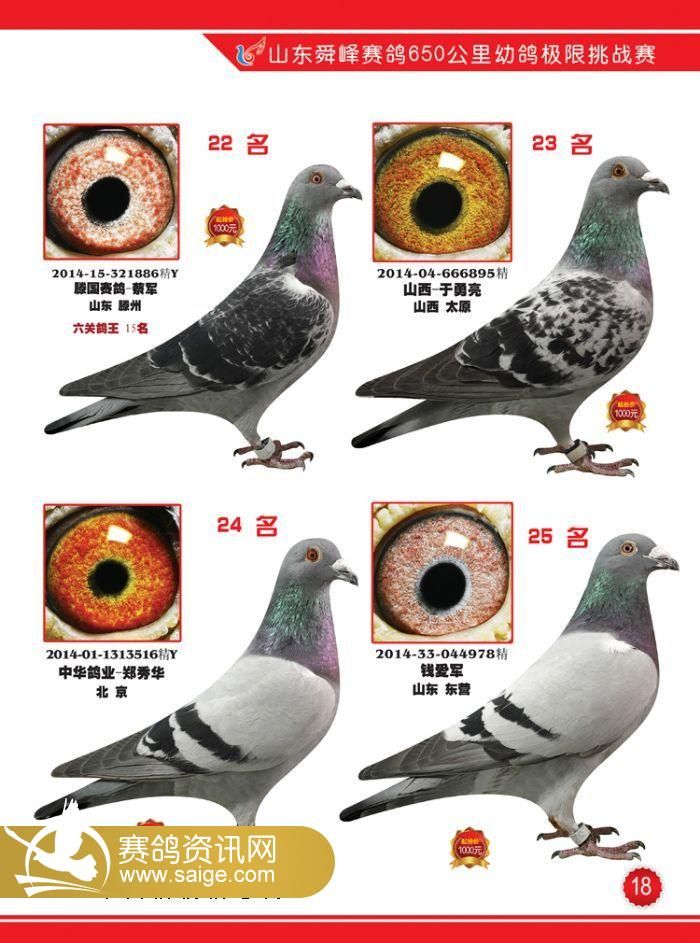 山东舜峰赛鸽650公里获奖鸽图片1-18名