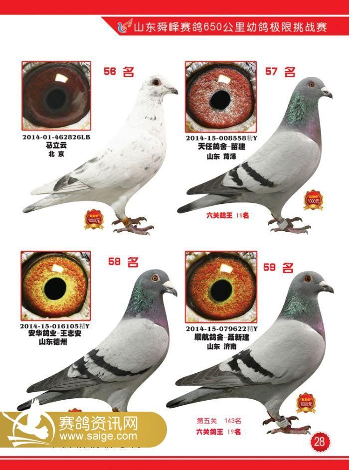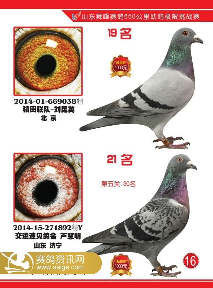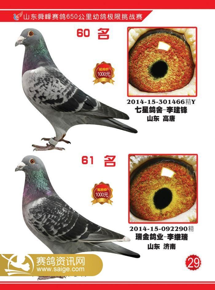 山东舜峰赛鸽650公里获奖鸽图片19-62名
