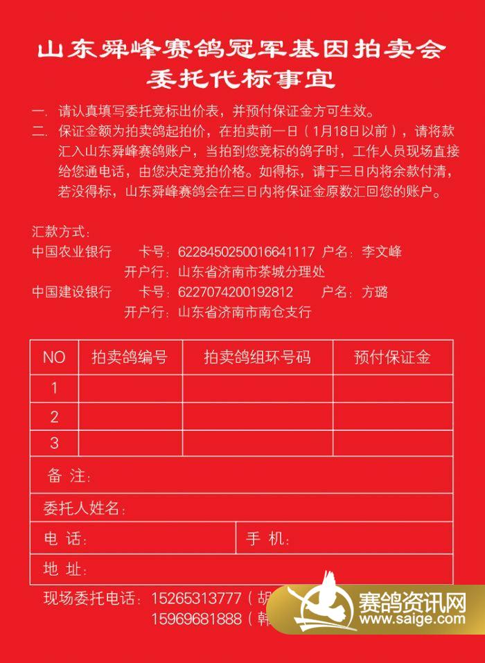 山东舜峰赛鸽2016年冠军基因拍卖会(三)