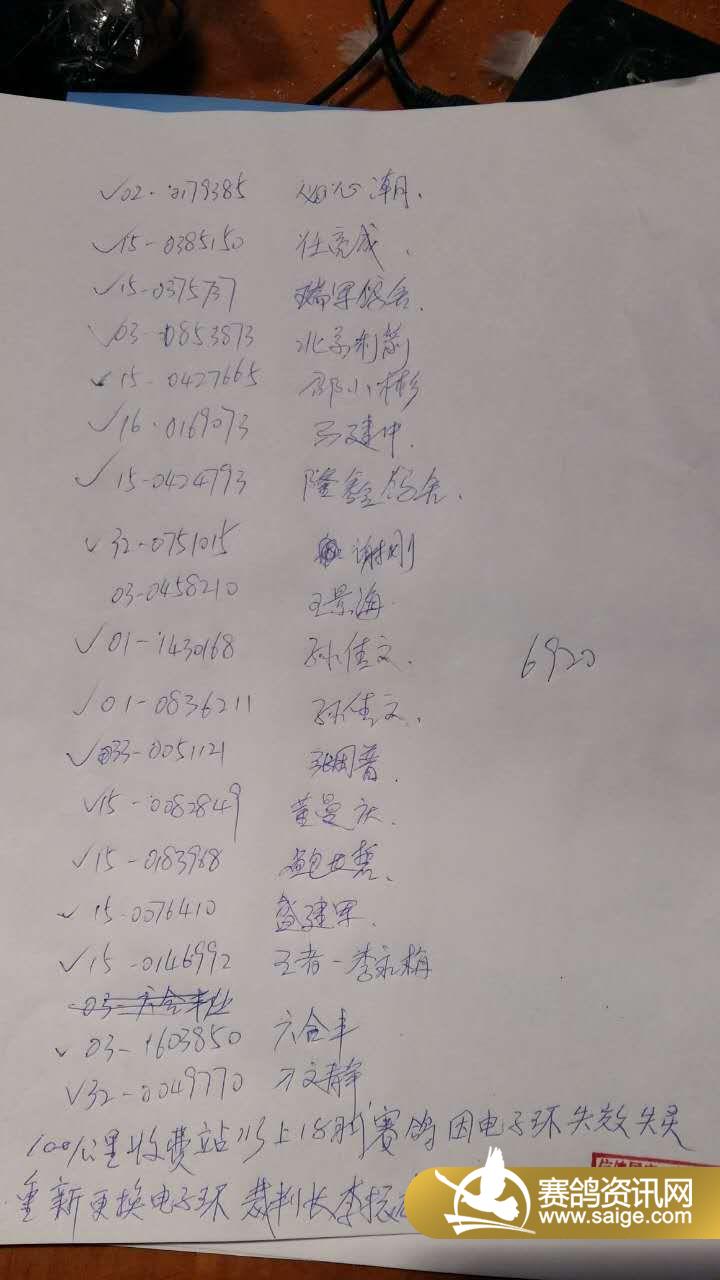 山东舜峰赛鸽100公里收费站更换电子环名单