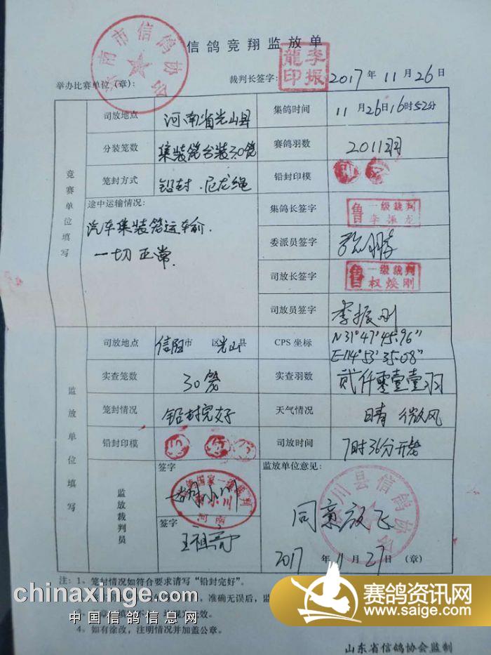 山东舜峰赛鸽公棚决赛上笼清单(按时间)