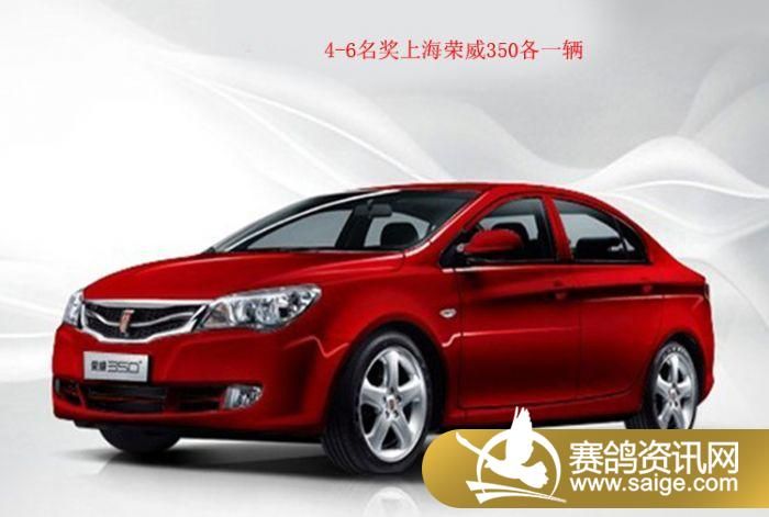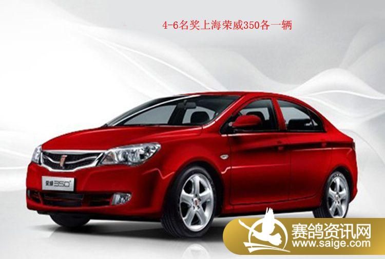 1-3名奖原装进口整车奔驰A160各一辆,每100羽奖一辆。如收鸽不足100羽按实际报名羽数90%现金发放。4-6名 奖荣威350各一辆,每50羽奖一辆。如收鸽不足50羽按实际报名羽数90%现金发放。