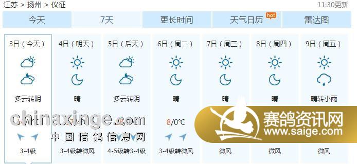 | 江苏雲外水莊赛鸽中心将于2016年12月4号进行80公里训放(如遇不利于训放的天气情况等因素则改期)。施放地:江苏省扬州市大仪镇。此次训放将由泰州市信鸽协会对现场集鸽、入笼、司放进行监督。届时将进行网上成绩直播及手机短信直播,敬请关注。