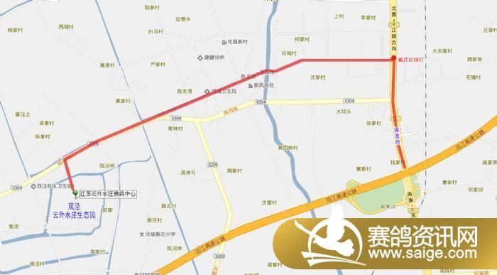 公棚路线地图:外地鸽友可以乘车至江阴西门车站直达月城,也可坐江阴东门车站直达月城(芙蓉车)至双泾生态园门口下。无锡车直达月城的车,或江阴至无锡、无锡至江阴的中巴车在月城戴庄下车打的至西面二公里的生态园里。上高速的鸽友可以至沿江高速在青阳道口下来后往北面(江阴方面)至3公里处的月城戴庄路口红绿灯处向西3公里至双泾云外水庄生态园里。