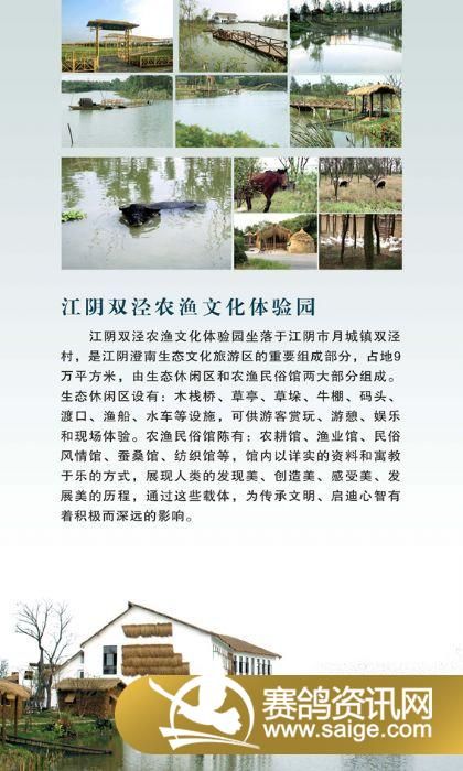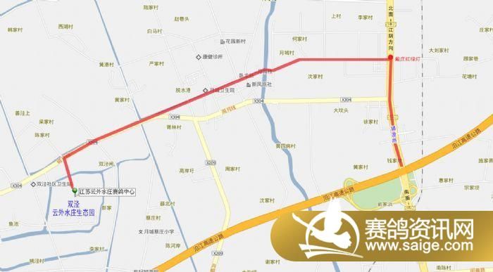 公棚路线地图:外地鸽友可以乘车至江阴西门车站直达月城,也可坐江阴东门车站直达月城(芙蓉车)至双泾生态园门口下。无锡车直达月城的车,或江阴至无锡、无锡至江阴的中巴车在月城戴庄下车打的至西面二公里的生态园里。上高速的鸽友可以至沿江高速在青阳道口下来后往北面(江阴方面)至3公里处的月城戴庄路口红绿灯处向西3公里至双泾云外水庄生态园里。