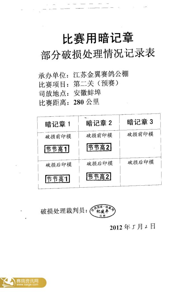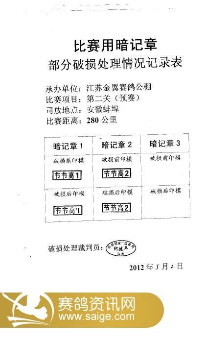 江苏金翼公棚第二关上笼抽检单,集鸽确认单
