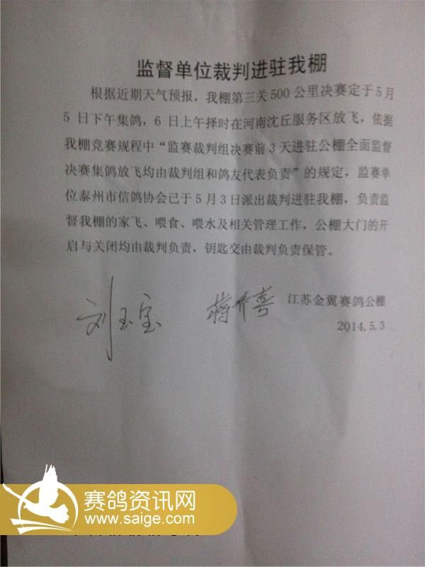金翼赛鸽公棚决赛公告