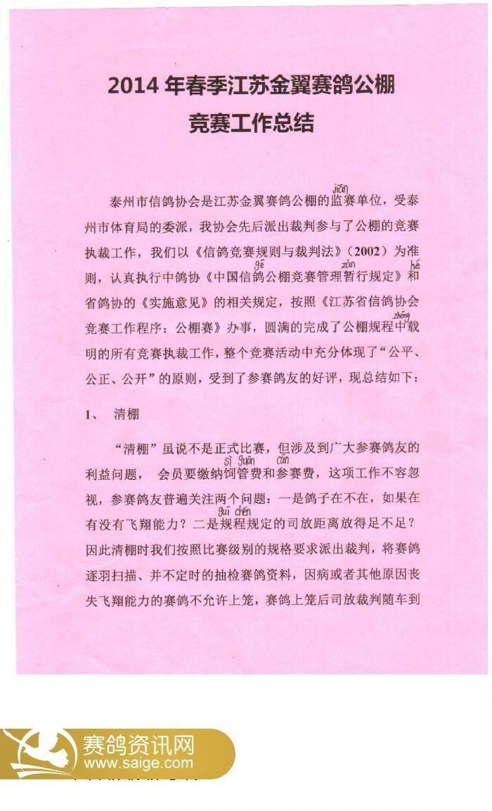 江苏金翼公棚2014年竞赛工作总结报告