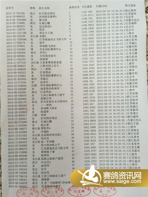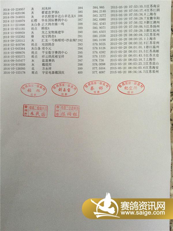 江苏金翼公棚第四关前6名现场验鸽图集