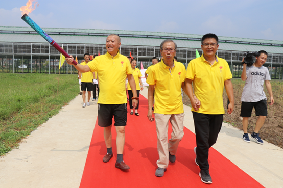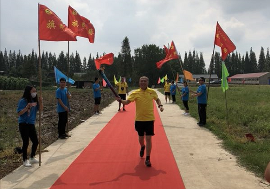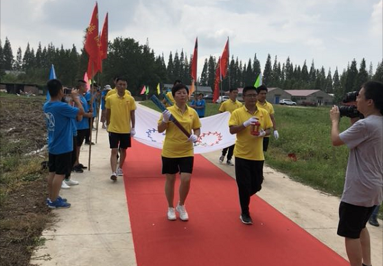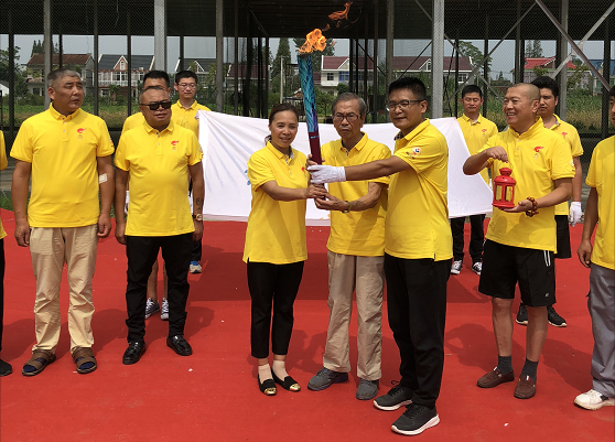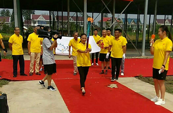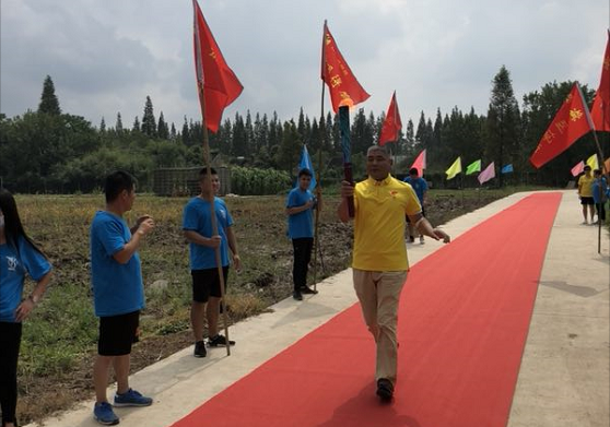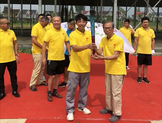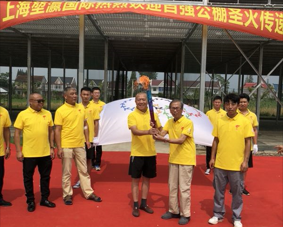 是日,阳光明媚,天清气爽。中国信鸽协会创始人之一的张顺奎老先生、当地鸽会领导和吕爱民伉俪早已等候在公棚,当地电视台也派出记者作专项报道。红地毯铺道,彩旗招展,“上海堃瀛国际热烈欢迎百强公棚圣火传递”的横幅高挂公棚。