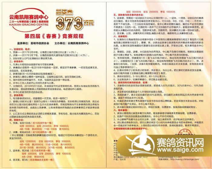 云南凯翔赛鸽中心第四届《春赛》竞赛规程(印刷版)