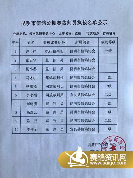 查棚裁判员执裁名单公示