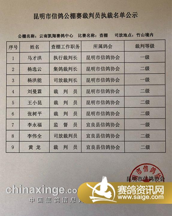 查棚裁判员执裁名单公示