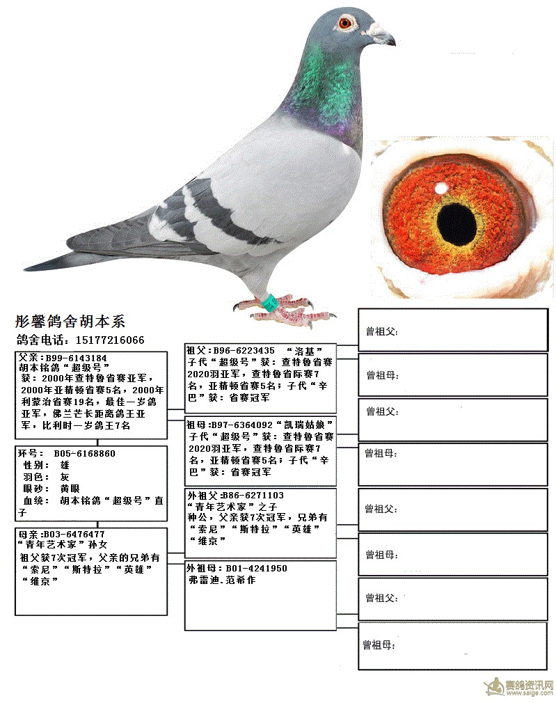 专题名称:胡本铭鸽“超级号”血系--此鸽出售中