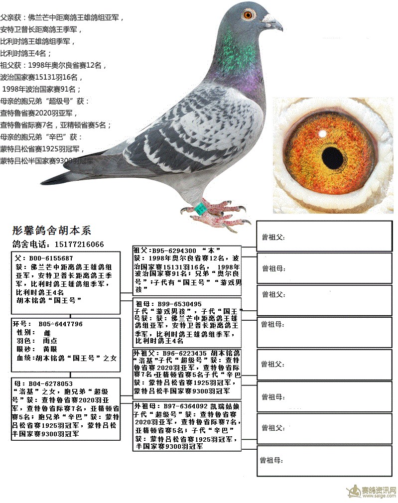 专题名称:胡本铭鸽“国王号”血系--此鸽出售中