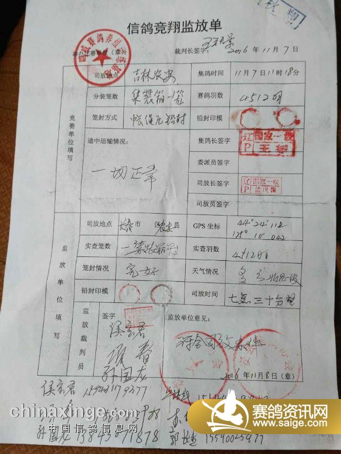 辽宁鸣威公棚521公里决赛监赛人员名单