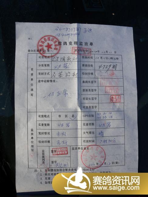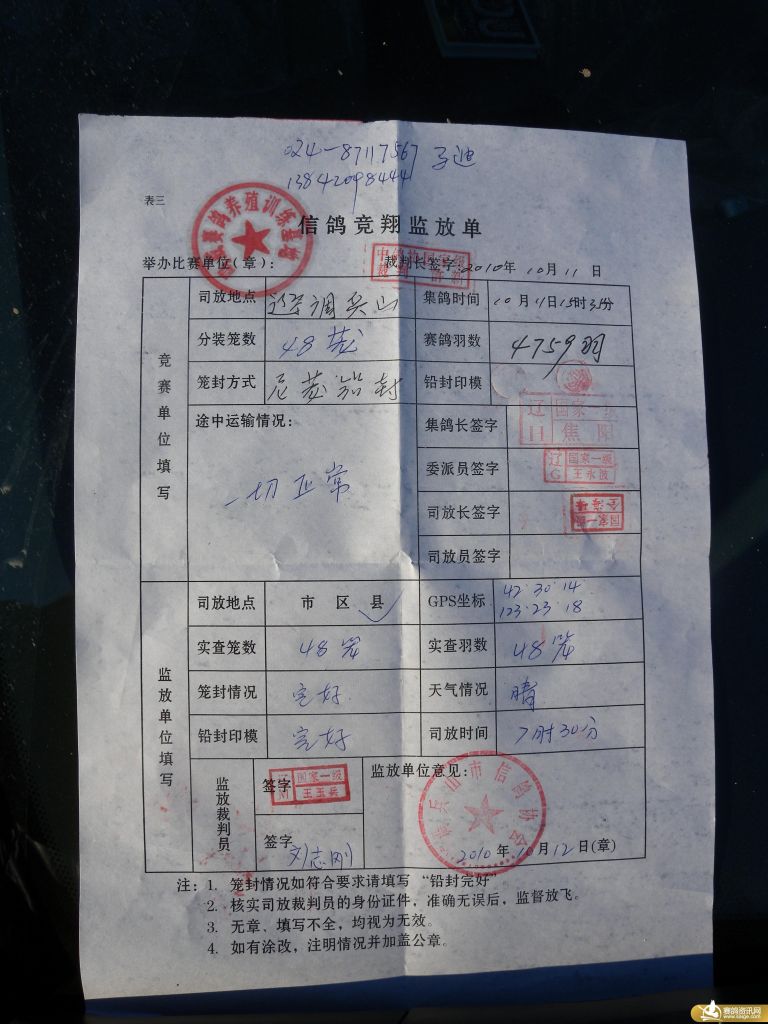 鸣威公棚300公里成绩单(二)