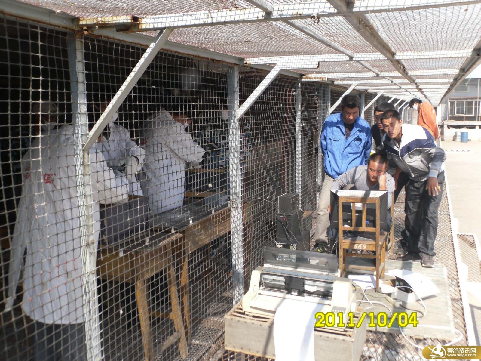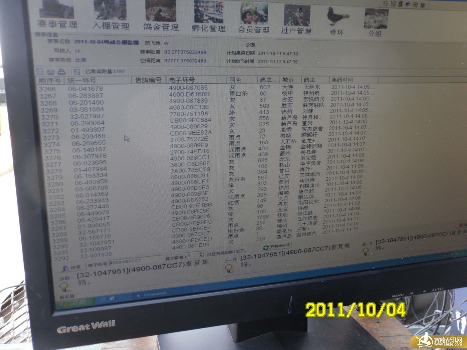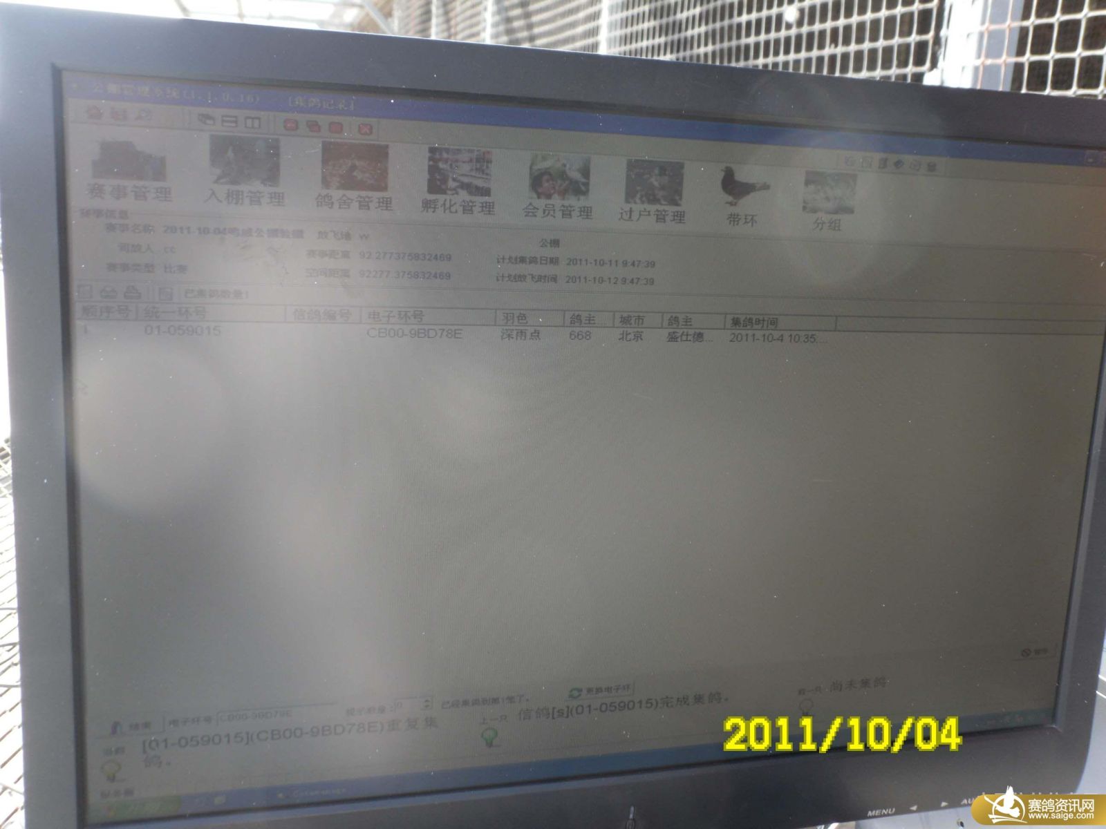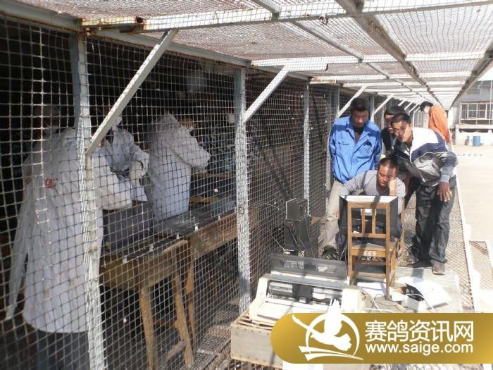 鸣威公棚100公里归巢鸽逐羽查验图片