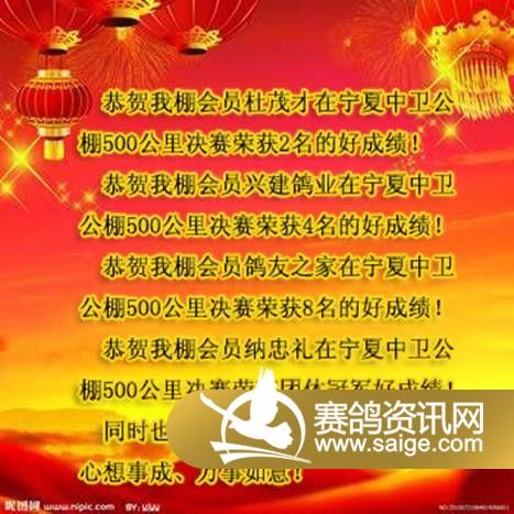 宁夏灵武市乐祥赛鸽公棚恭贺