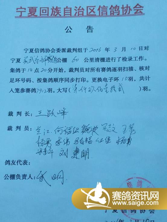 宁夏乐祥赛鸽公棚60公里清棚收费公告